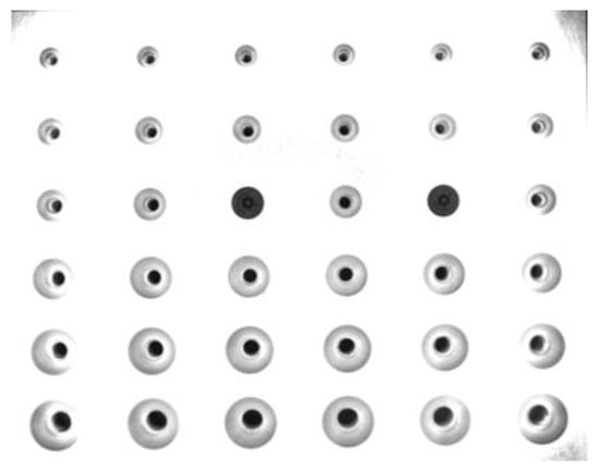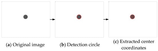 Subsequently, the nine collected images were processed, and the edge-detection method was used to extract the center coordinates of the marked points. This process is shown in Figure 7.