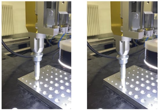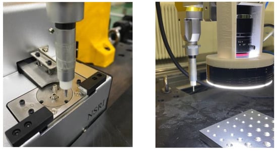 To improve the positioning accuracy of threaded holes, visual measurement technology has been introduced to modify their position information. After moving the industrial camera over the threaded holes according to the drawing information, a more accurate position can be obtained by visually measuring the screw assembly [7,8]. He et al. developed a threaded hole recognition and positioning technology based on machine vision technology. It located the holes based on edge detection and Hough transformation as well as measured the coordinates of thread holes for guiding the manipulator to complete the assembly [9]. Pitipong et al. designed an automatic locking system for a manipulator with four degrees of freedom. The position and attitude errors of the screws were monitored in real time based on fuzzy control and visual servo feedback strategy [10]. Albert et al. used machine vision for guiding SCARA robots to locate threaded holes such that these machines could be applied to the automated production line of microscrews [11].