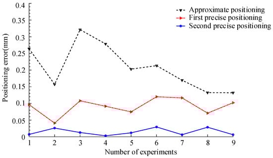 The accuracy of visual positioning is shown in Figure 26. Generally, a visual positioning accuracy of less than 0.05 mm can be achieved after two precise positioning maneuvers, thus satisfying the requirements.