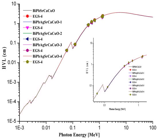 Figure 3, respectively. From these figures, it is seen that both the half value layer (HVL) and the mean free path (MFP) values for the superconductors examined increase with the increasing photon energy.