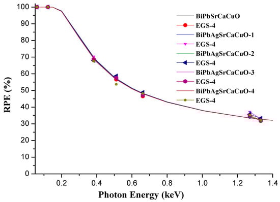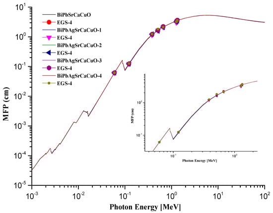 In addition, when the HVL and MFP values of the examined superconductors were compared from the figures, it was seen that the BiPbSrCaCuO superconductor samples had lower HVL and MFP values as the contribution of silver increased. Therefore, it has been observed that the superconductor samples have better attenuation properties when the silver doping is increased. The relationship between HVL/MFP and photon energy can be explained by the fact that higher-energy photons are less likely to be absorbed or scattered by the material. Therefore, as photon energy increases, HVL and MFP values increase, indicating that the material becomes more transparent to higher-energy photons. In superconducting samples, lower HVL and MFP values correspond to higher photon shielding properties [