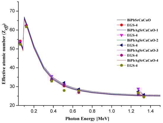 Figure 4. Ag-doped BiPbSrCaCuO superconducting ceramic samples differ in their Zeff values depending on their chemical composition.