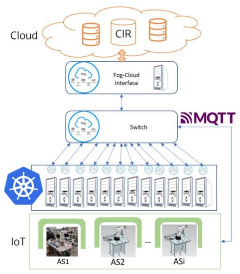 Industry 4.0 consists of the integration of multiple technologies that can be deployed into several control layers. Thus, the specific multi-layer approach considered in this case study is aligned with OpenFog and comprises the IoT, Fog and Cloud layers presented in Figure 7.