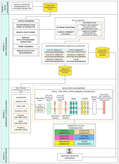 - Ferrari, A.; Donati, B.; Gnesi, S. Detecting Domain-Specific Ambiguities: An NLP Approach Based on Wikipedia Crawling and Word Embeddings. In Proceedings of the 2017 IEEE 25th International Requirements Engineering Conference Workshops (REW), Lisbon, Portugal, 4–8 September 2017. [Google Scholar] [CrossRef]