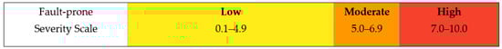 The fault-prone severity scale is a categorization of the level of ambiguity in a software requirements specification (SRS) based on the fault-prone SRS score. The scale is divided into three categories: low ambiguity, moderate ambiguity, and high ambiguity, as illustrated in Figure 12.