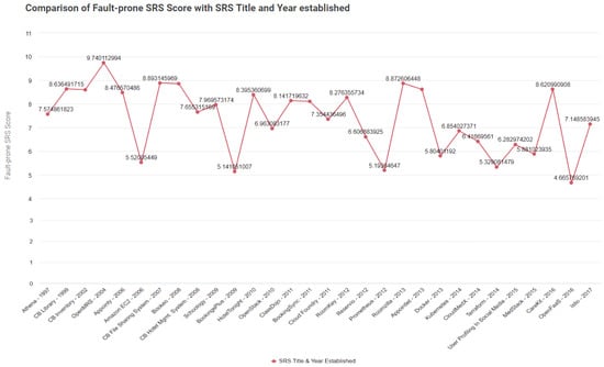Comparison of Fault-prone SRS Score with SRS title and Year established.