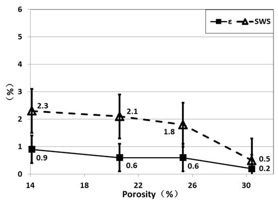 Figure 6 shows the P-wave anisotropy parameter (ε) and SWS in all the blank samples. Both the ε parameter and SWS decreased with increasing porosity in the blank samples. Because the higher porosity samples suffered lower uniaxial loading (Table 1), they exhibited weaker anisotropy.
