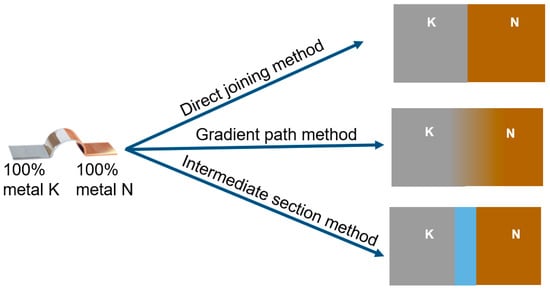 Gradient path methods offer a gradual change of composition to minimize mismatches at the interface, which could potentially cause interface cracking. To promote the bonding strength between the dissimilar materials, new chemistries can be developed between the two materials to limit the possibility of secondary brittle phase formation, which can arise from compositionally sharp gradients [52,57].