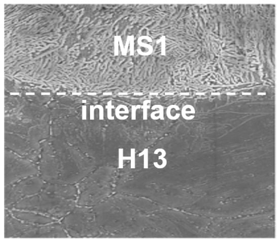 Microhardness changes across the MS1–H13 interface. Reprinted with permission from [89]. Copyright 2019 Elsevier B.V.