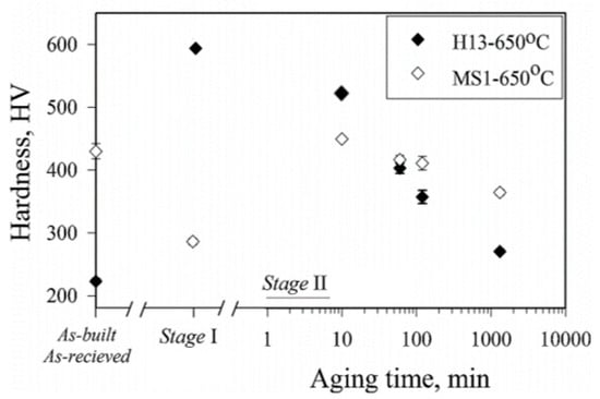 - Mahmoudi, A.; Ghavidel, M.R.Z.; Nedjad, S.H.; Heidarzadeh, A.; Ahmadabadi, M.N. Aging Behavior and Mechanical Properties of Maraging Steels in the Presence of Submicrocrystalline Laves Phase Particles. Mater. Charact. 2011, 62, 976–981. [Google Scholar] [CrossRef]