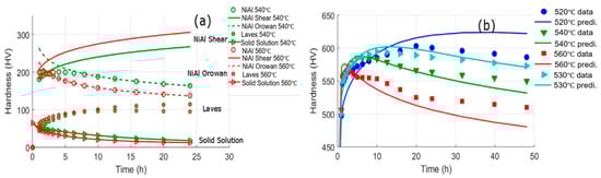 The strengthening mechanism for maraging steels includes solid solution strengthening, dislocation hardening, and precipitation strengthening. In addition, the effect of these mechanisms may be utilized to evaluate the Vickers hardness and yield strength of maraging steels according to Equation (1) [92,93,94].