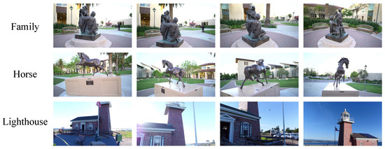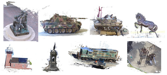 The Tanks and Temples dataset [31], as shown in Figure 9 contains photos of buildings such as tanks and temples, as well as vehicles, which can be used for 3D reconstruction. Compared to the DTU dataset, it faces more challenges due to factors such as changes in lighting and dynamic targets in outdoor scenes, requiring algorithms to have higher robustness and accuracy. This dataset also includes the trajectory of the appearance camera and the true ground coordinates of buildings, which can be used to evaluate the reconstruction accuracy of algorithms.