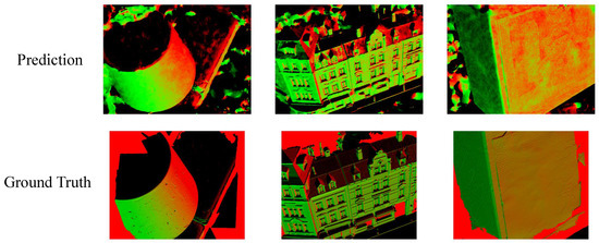 In Figure 6, it is proposed to simultaneously produce the depth prediction module as well as the normal vector prediction module of the model utilizing the cost aggregation method. The 3D U-Net structure, in accordance with the conventional multi-view stereo networks, is leveraged to standardize the cost aggregation and expunging the effect of individual outliers in the matching. In addition, to acquire depth maps and normals at the same time, a convolutional neural network was integrated at the terminal end of the 3D U-Net structure for dimension transformation of the output cost volume. Lastly, the final cost volume V measures . The regression formula for the depth map is demonstrated below, with “L” indicating the stage level.