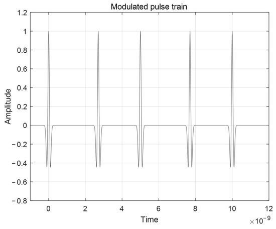 where σ2 denotes the variance of the Gaussian pulse signal. To simplify Equation (1), we set α2 = 4πσ2. Then, the time-domain expression of the Gaussian pulse is