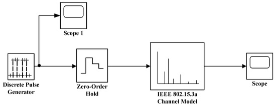 In general, the performance of a wireless communication system depends on the characteristics of the channel. The UWB communication channel is only made between the signal sender and receiver. During the signal propagation, the direction of signal propagation will be shifted with an offset due to the obstacles. The signals at the receiver are the superposition of multiple signals, and the time of signal arrival and propagation path are different, which will also lead to changes in the phase and amplitude of the signals at the receiver. Therefore, it is necessary to establish a reliable UWB channel model. In fact, the UWB channel can be regarded as an open loop control system, as shown in Figure 2. The given transmitted signal is the input, and the received signal is the output [41].