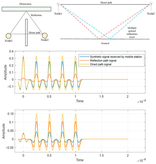 The phenomenon that causes signal superposition is called the multipath effect. As shown in Figure 8, a signal is transmitted along the direct path(black line) from Node 1 to Node 2, and it’s refracted signal is also transmitted along two possible reflection paths(red or blue dash lines) to Node 2—if the signal is superimposed in the same direction, multipaths have little effect on the decoding of the signal. However, if the length of the two paths is exactly half a wavelength apart at this point, then the two signals eliminate each other exactly when they reach Node 2, which distorts the signal and prevents the receiver from decoding the signal.