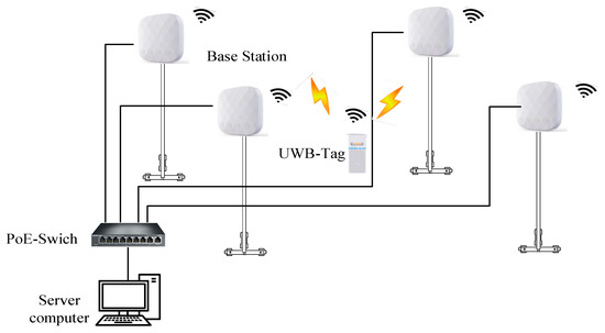 As the hardware topology of the UWB positioning system is shown in Figure 10, the POE switch can realize the transmission of positioning data in the same network. The main implementation of the analysis layer is to parse the internal hexadecimal message through the server, including the time of sending and receiving data, transmission frequency, etc.