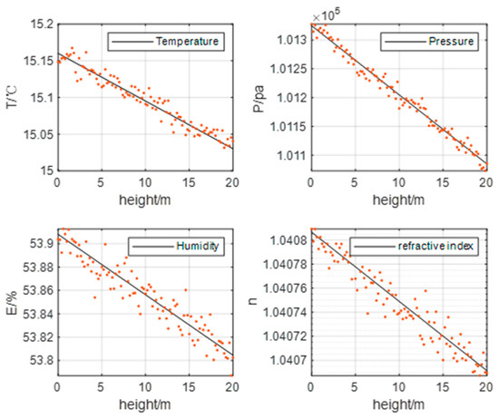 Changes in indoor temperature, air pressure, humidity, and atmospheric refractive index from 0~4m.