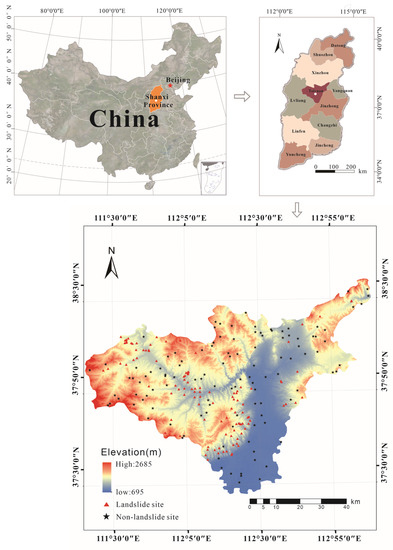 Map of the study area and distribution of landslide points.