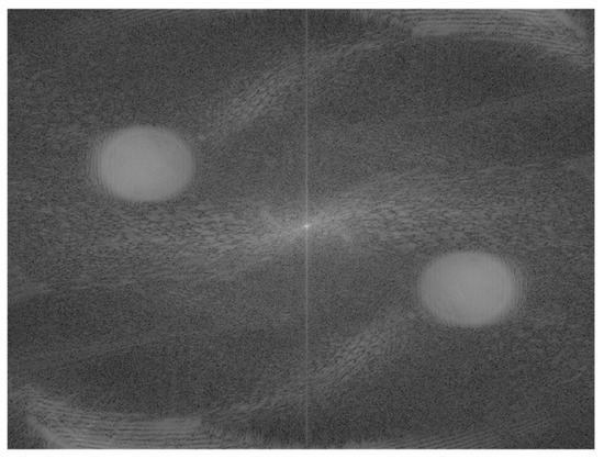The first step of the reconstruction procedure involves removing the zero-order term from the recorded hologram. We apply a method described in [37]. A spatial frequency mask is applied in the Fourier domain to select only the carrier frequencies that contain the required hologram information. The mask’s size and shape are chosen to cover only one of the carrier frequencies of the twin lobes in the spectral domain (Figure 2), effectively filtering out all frequencies except the desired ones. The chosen frequencies are then cantered and zero-padded in the Fourier domain. The complex image is retrieved using the inverse fast Fourier transform.