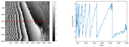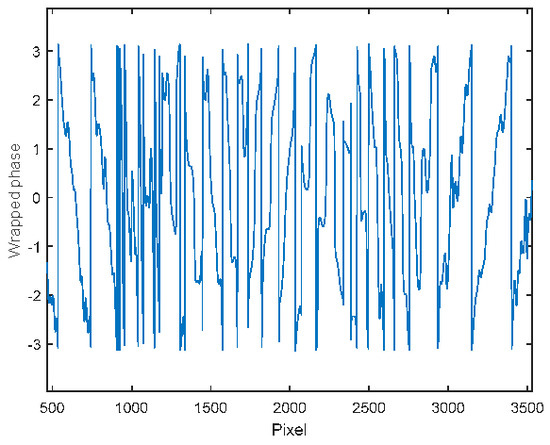 A cross-sectional profile plot of the phase difference map (Figure 7, right) at pixel row number 1500 (the red line).