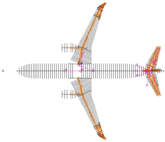 Traditional flight load design has been well developed and has achieved many results, including engineering design examples and scientific research papers. In engineering applications, different flight parameters, including airspeed, altitude, and maneuvering capabilities, are selected based on the aircraft model to construct flight envelopes. Then, CFD calculations [3,4] or wind tunnel calculations [5] are performed on the component loads within the flight envelope to establish a component load database. The load distribution of the components and the entire aircraft is determined based on static aeroelastic analysis, and the severe load conditions of the components are selected as important basis for aircraft structural strength design.