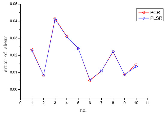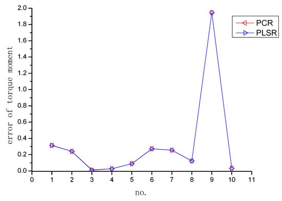 The detailed numerical comparison of the errors and relative errors of the regression results of PCR and PLSR is shown in Table 3. In the table, the reason for the large relative error in the 9th case is that the numerical value itself is much smaller compared to other cases. Therefore, the calculated relative error is relatively large.