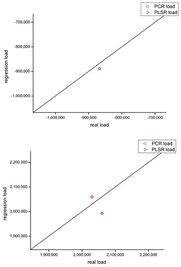 In summary, the predictive accuracy of the flight load regression model based on PCR and PLSR constructed in this paper is very high and is able to meet the needs of flight load engineering applications. In particular, the regression effect of PLSR is slightly better than that of PCR.