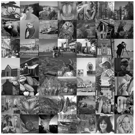 - Computer Vision Group, University of Granada. Dataset of Standard 512X512 Grayscale Test Images. 2002. Available online: https://ccia.ugr.es/cvg/CG/base.htm (accessed on 23 January 2023).