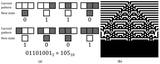 - Wolfram, S. Statistical mechanics of cellular automata. Rev. Mod. Phys. 1983, 55, 601–644. [Google Scholar] [CrossRef]