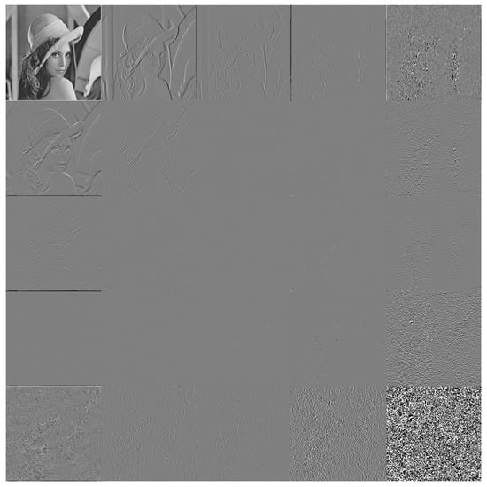 Figure 3 shows a grayscale image of px and the corresponding results for the JST, giving non-overlapping blocks of px for , px for , and px for .