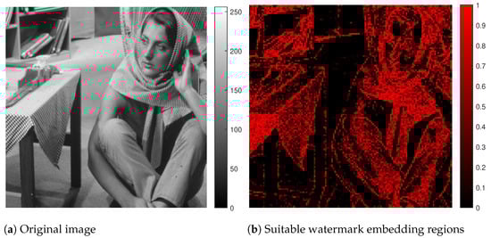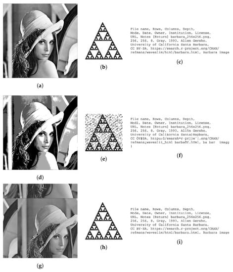 There are many methods for watermarking images presented in the literature, and depending on the application, the requirements of the methodologies vary. The algorithms designed for watermarking have advantages and disadvantages. The most-representative work is in the transformation domain. For example, in Mokashi et al. [1], a strategy for watermarking images was introduced, which combines the Discrete Wavelet Transform (DWT), Discrete Cosine Transform, and Singular-Value Decomposition. The watermarks utilized in this approach are the users’ biometrics and their signature. During the embedding process, the biometrics acts as the host image, while the signature serves as the watermark. In contrast, for a second embedding process, the resulting watermark of the first process is embedded into the primary host image. In both embedding processes, the host image undergoes decomposition using the DWT, and the watermark is inserted inside the low-frequency coefficient by means of SVD.