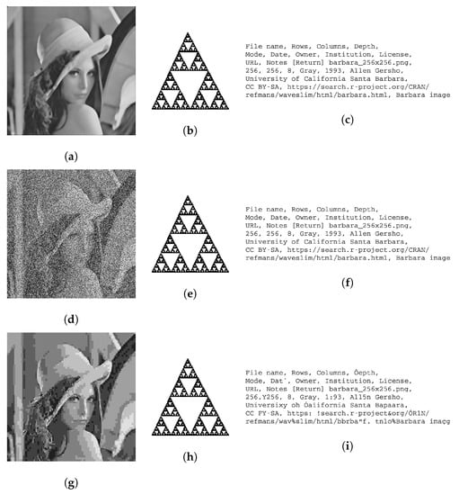 As a watermark, we used a digital image (LOGO) of px, as is shown in Figure 2a. In addition, we used the image MetaData of the Barbara image in plaintext, as we show in Figure 2b.