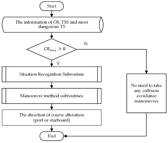 This work develops the maneuvering decision-making method, as shown in Figure 12. The collision avoidance system continually cycles the process at 5 s intervals throughout the operation, based on the above research.