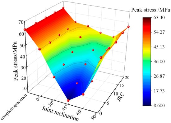 3.3. Relationship between Peak Stress, JRC and Joint Inclination