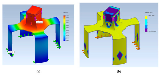 (a) FEA displacement analysis for the top part; (b) topology study for the top part.
