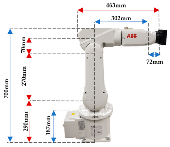 The Jacobian matrices for all the joints and transformations of the ABB IRB 120 robot are already defined in [31]. Furthermore, a D-H parameter table is constructed based on the ABB IRB 120, as depicted in Figure 15. This information generates rotational Jacobian matrices using Equation (9).