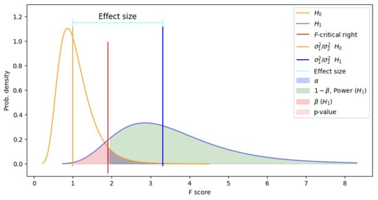 - Power test: If there are statistically significant differences in both the variance difference test and the mean difference test, a power test is performed to evaluate the size of the effect [39,40] obtained and the probability that the effect is true.