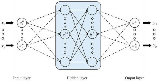 where (1) denotes the neural network’s input layer; denotes the neural network’s hidden layer; denotes the number of nodes in the neural network’s output layer.