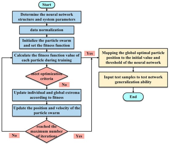 The flowchart of the PSO–BP neural network model construction is shown in Figure 4.