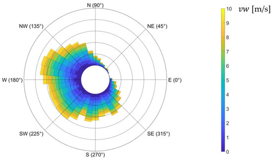 The function (used in (59)) represents the forecasted weather conditions during the UAV flight mission [38,39]. A value of this function determines the maximal value of forecasted wind speed in direction . Moreover, the function determines the robustness of a UAV flight mission plan for the forecasted weather conditions [40]. This means that its value determines the border value of wind speed in direction for which the UAV flight mission plan is feasible (i.e., the duration of the mission will not fully discharge the UAV’s battery).