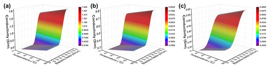 The electrical conductivity response according to the change in the temperature and electric field of the tissue is shown in Figure 2. The electrical conductivity was calculated through Eq. 3 within the temperature range of 37–57 °C and the electric field range of 100–800 V/cm. The ranges of electrical conductivity change for the ML, SL, and MP used in this study were 0.511–1.638, 0.251–0.803, and 0.202–0.586 S/m, respectively. The above values were used in FEM simulation for the electric field distribution in the tissue and for probability of cell death due to EI (PEI). In addition, it should be noted that the influence of temperature on conductivity was small enough to be negligible compared with the change in electrical conductivity for electric field strength [33].