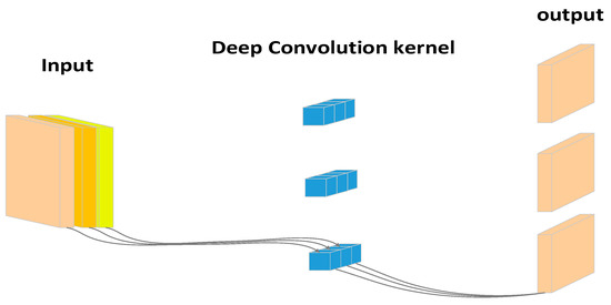 Ensuring the detection accuracy of this model, the depth-separable convolution [43] was introduced in the backbone network instead of the 3 3 ordinary convolution in the backbone network, which reduced the number of parameters and computation in the network model and improved the detection speed. The depth-separable convolution structure is shown in Figure 6.