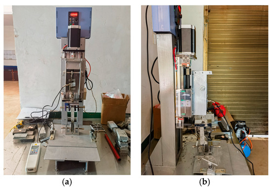 The experimental equipment used was a tensile testing machine (0~5000 N), with specific fixtures to fix the specimens. The fixation of rubber-cement tensile and shear specimens is shown in Figure 19. Due to the rectangular shape of the rubber-cement specimens and the brittleness of the bonding interface, the selected tensile speed was 5 mm/min. The maximum stress sustained during the process of bonding failure caused by external forces was taken as the tensile or shear strength. The average strength of three specimens in each group was taken as the measured result.