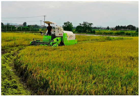 - NY/T 498–2013; Agricultural Industry Standard of the P. R. China. Operating Quality for Rice Combine Harvesters. China Agriculture Press: Beijing, China, 2013.