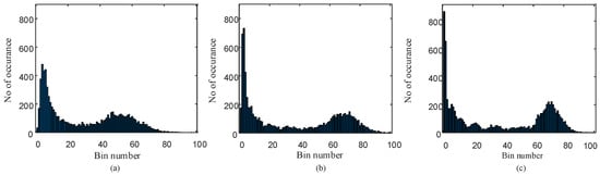 In this work, the three parameters under study introduce amplitude variation. Therefore, in order to have a power ML model that can predict each parameter accurately, the model should be trained using features that preserve the amplitude information of the received signals. The amplitude histogram is used in this work as a feature for training the proposed model since it preserves the optical signal’s amplitude information. To reduce the acquisition system cost, we utilize an AAH. The AAH samples the signal asynchronously as depicted in the inset in Figure 1, which reduces the sampling speed and hence allows using a low-speed sampler. Each realization is sampled at 500 Msample/s. The AAH feature not only helps build a cost-effective ML model but also eliminates the need for timing recovery at the receiver, thereby avoiding the need for additional hardware.