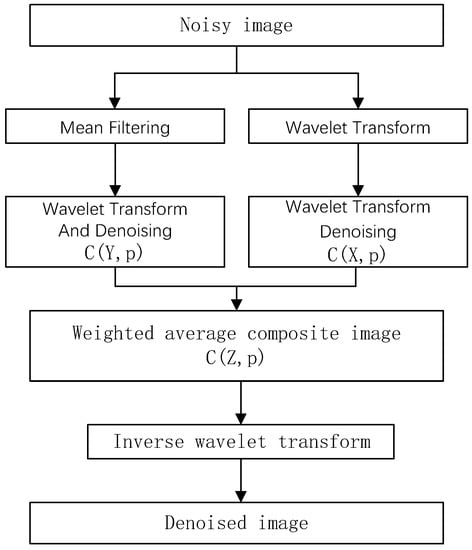 In regions of the background where strong stray light is present, we amplify the k value to enhance the proportion of the denoised image Y, which is obtained after mean filtering, in the composite image Z. Conversely, in regions with weak stray light in the background, we reduce the k value to enhance the proportion of the denoised image X, obtained through direct curvelet filtering, in the composite image Z. The flowchart of the mean wavelet transform denoising algorithm is shown in Figure 2.
