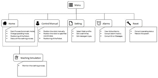 The control system interfaces are represented in the flowchart of Figure 6. This navigation scheme was designed with the purpose of minimizing the steps necessary to carry out an operation.