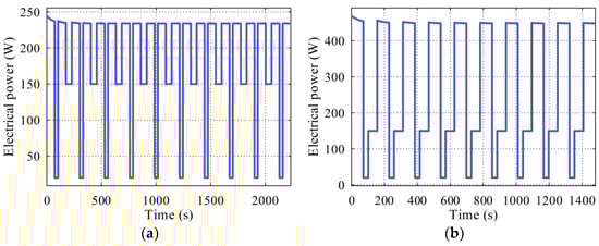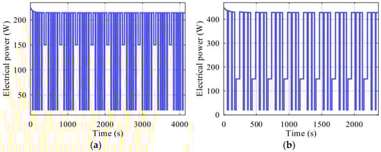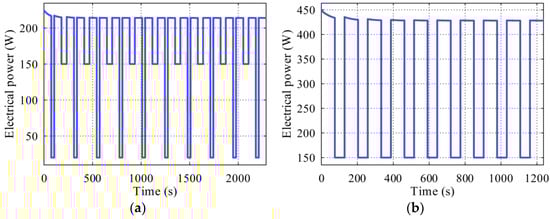 Electrical power consumption according to disinfection scenario 1 using two far-UVC lamps (a) and four far-UVC lamps (b).
