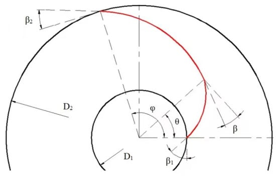 The equation of the blade profile of the impeller is shown in Equation (1):